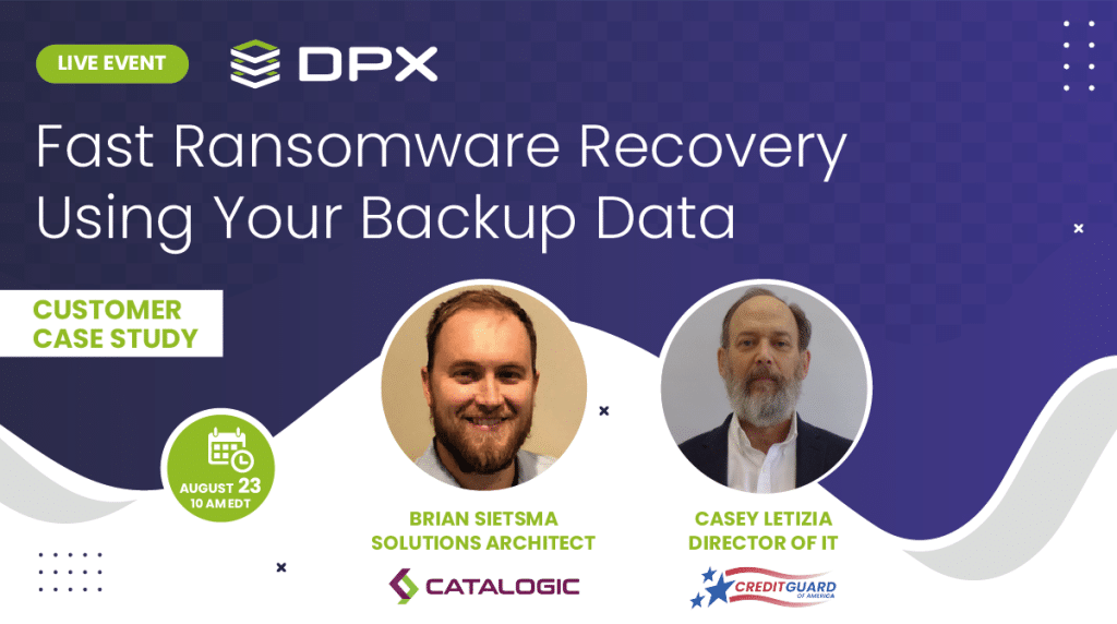 During this webinar, we’re going to review a specific ransomware recovery case study with Casey Letizia, Director of IT at CreditGuard. We will then review how DPX provides ransomware detection and granular recovery to quickly recover your data and systems from future attacks, including: